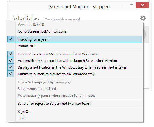 Step 3: In Screenshot Monitor app switch to “Tracking for myself”