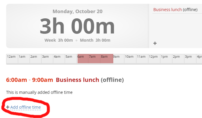 Allow adding Offline Time (default Allow) – users by default can add as much time as they want as “Offline”, without tracking it – such time would be indicated in different color and with word offline on the timeline and reports – see below