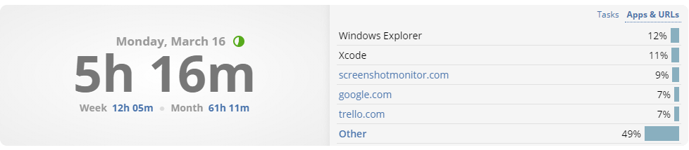 Employees install an app on their computers and start time tracking when they start working and stop when they are done. A manager can open a browser and see what their employees were working on, their activity level and periodic screenshots of their monitors.